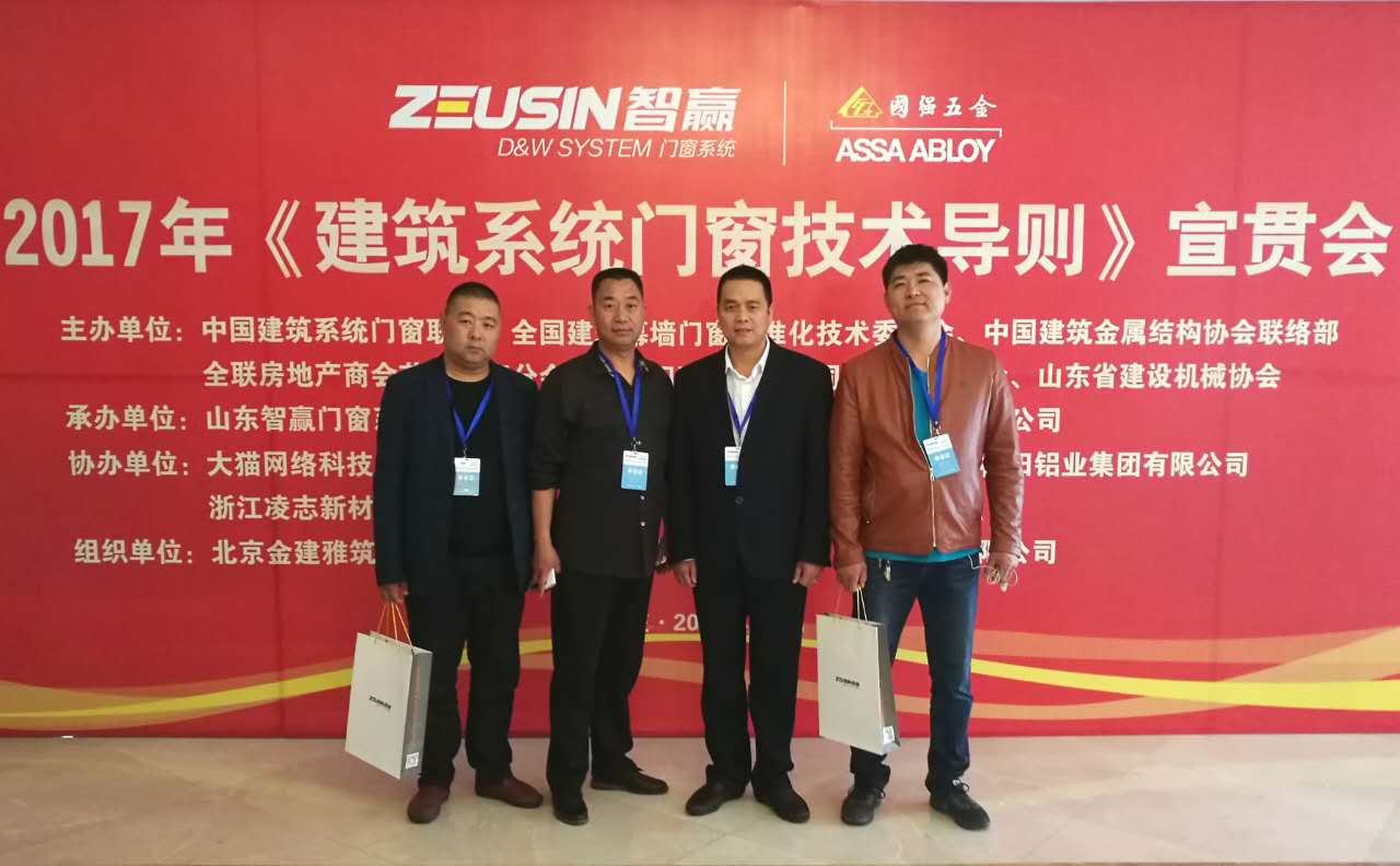2017年4月16日,山東智贏門窗系統(tǒng)有限公司承辦的《建筑系統(tǒng)門窗技術(shù)導(dǎo)則》宣貫會在山東棗莊成功舉辦。中國建筑金屬結(jié)構(gòu)協(xié)會秘書長、全聯(lián)房地產(chǎn)商會顧問劉哲;中國建筑系統(tǒng)門窗聯(lián)盟執(zhí)行理事長兼秘書長孟繁軍;中國住建部幕墻門窗標(biāo)準(zhǔn)化技術(shù)委員會秘書、全國住建幕墻門窗標(biāo)準(zhǔn)化技術(shù)委員會委員及秘書處主任劉會濤;中國住建金屬協(xié)會副會長張俊乾;山東省建設(shè)機(jī)械協(xié)會會長張永光;連云港市門窗協(xié)會會長潘國柱;大眾日報棗莊記者站站長張環(huán)澤、山東廣播電視臺棗莊記者站站長張昌興等300多人參加了本次會議。