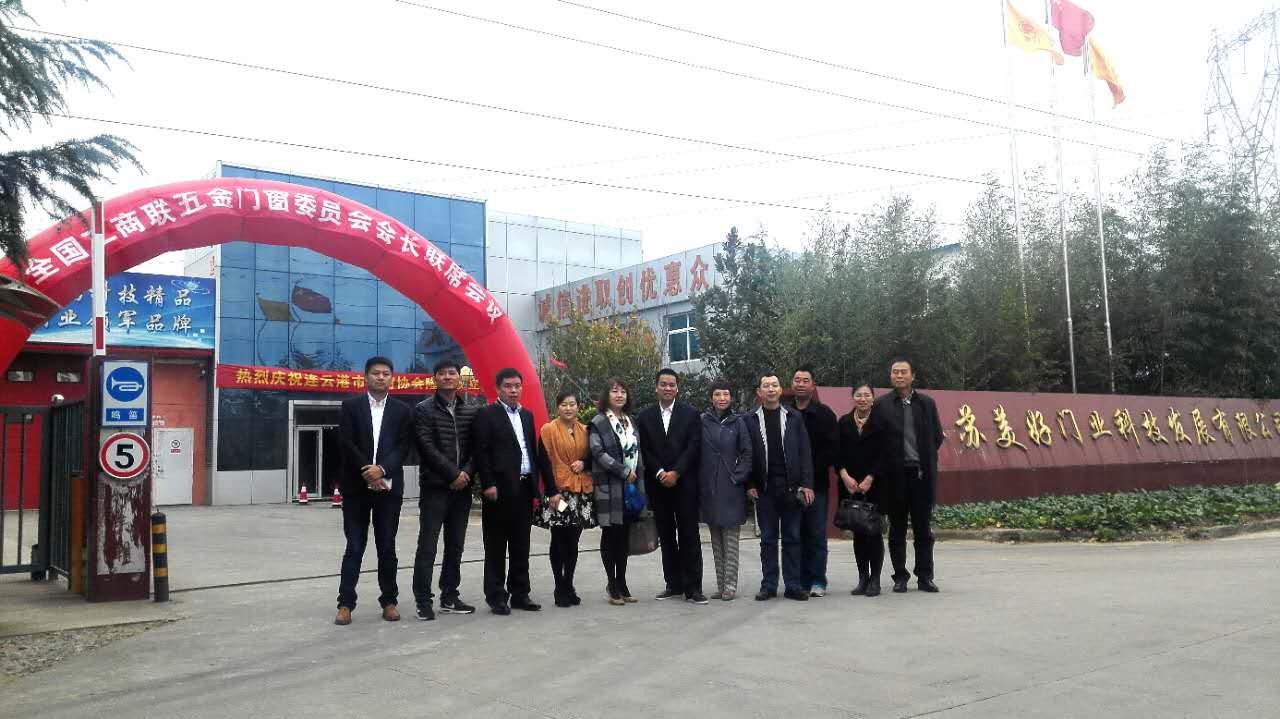 參會人員在江蘇美好門業(yè)科技發(fā)展有限公司門前合影留念