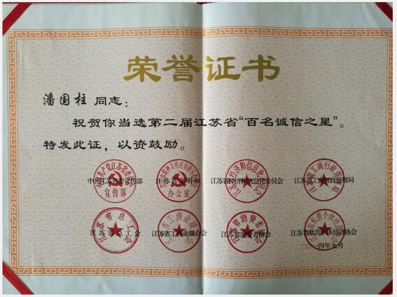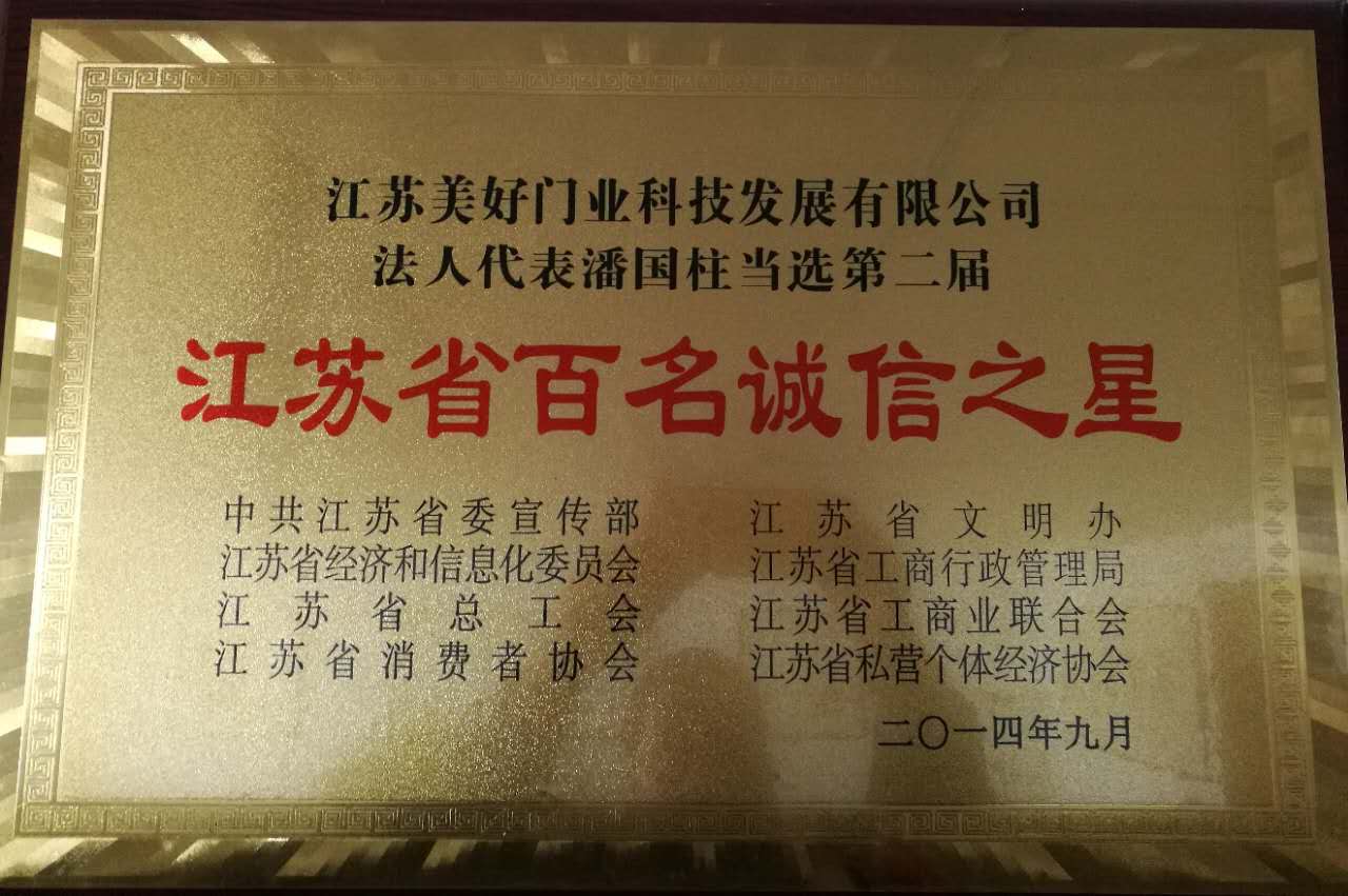 江蘇美好門業科技發展有限公司法人代表潘國柱當選第二屆江蘇省百名誠信之星