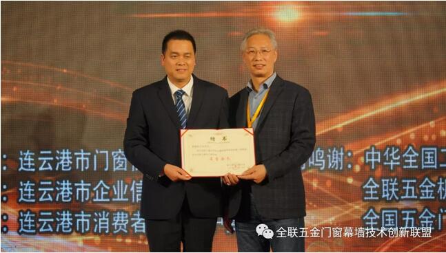 全國(guó)工商聯(lián)五金機(jī)電商建筑五金門(mén)窗(幕墻)委員會(huì)會(huì)長(zhǎng)王辛同志被聘為連云港市門(mén)窗協(xié)會(huì)名譽(yù)會(huì)長(zhǎng)。