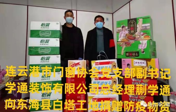 ? ? ??連云港門窗協(xié)會黨支部副書記(學通裝飾公司總經理)蒯學通先后為東海縣白塔工地、海州區(qū)浦南鎮(zhèn)半灘村、浦南鎮(zhèn)康寧社區(qū)捐贈現金及物資,累計8000元。