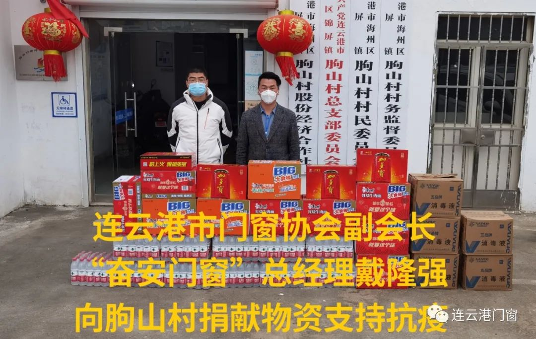 ? ? ? 連云港市門窗協(xié)會副會長(奮安門窗總經理)戴隆強為錦屏鎮(zhèn)朐山村捐獻物資3000元,同時還在河西社區(qū)做自愿者參與抗疫工作。