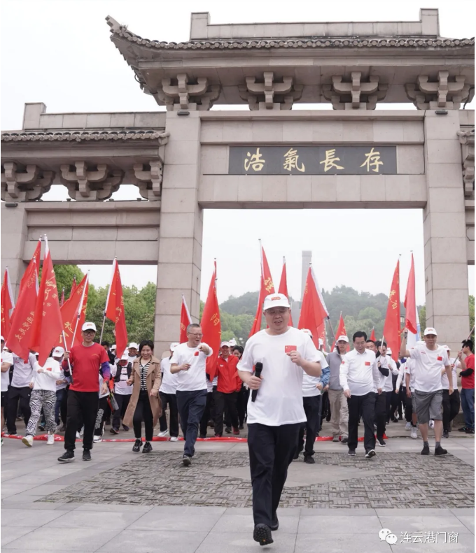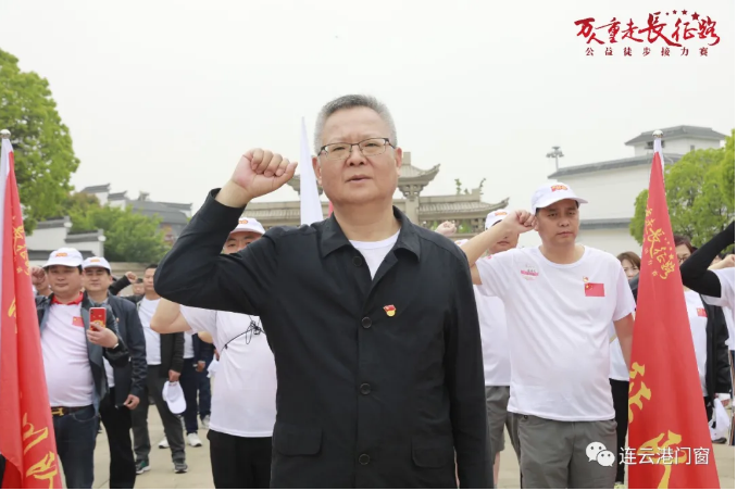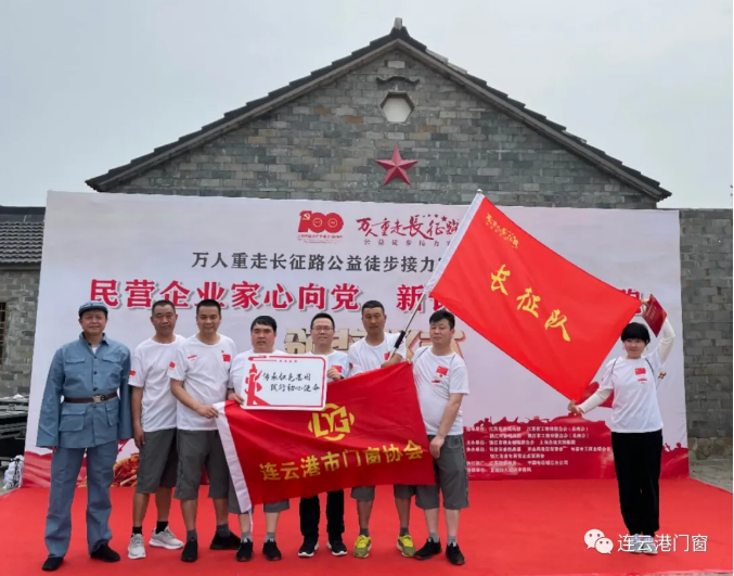 ? ? ??連云港市門窗協會黨支部書記、會長潘國柱,副書記蒯學通,常務副會長孫華才,監事長高德俊,執行秘書長唐春和,副秘書長莊東生在連云港市工商聯王蘭副主席的帶領下,組建“長征隊”參加了本次愛國主義公益活動。