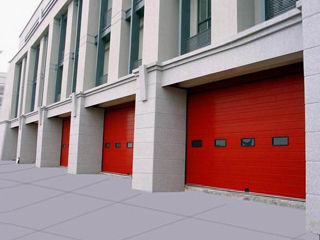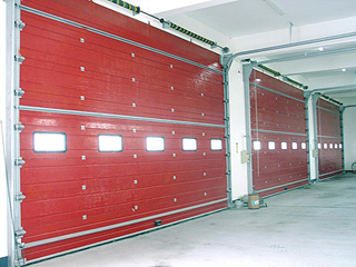 消防車庫(kù)門專為消防車庫(kù)量身設(shè)計(jì)制作的專用門,開關(guān)迅速,mention一般采用消防紅色。